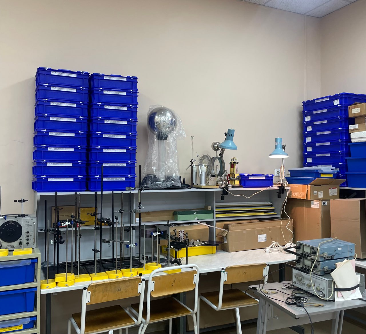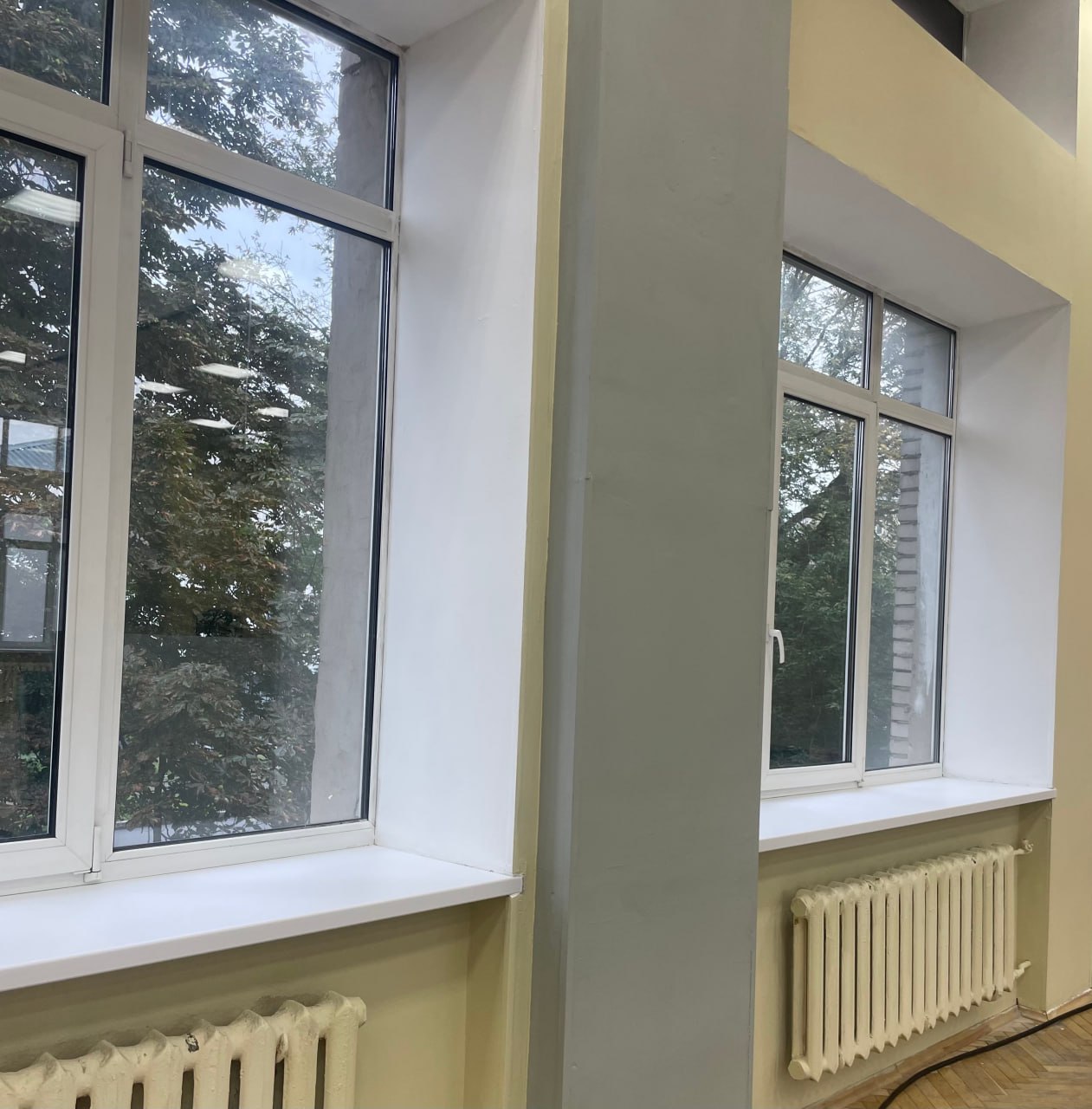 За лето мы отремонтировали актовый зал: демонтировали старые жалюзи и занавеси, заменили подоконники, покрасили стены. Обновлена и физическая лаборатория, осуществлен косметический ремонт.